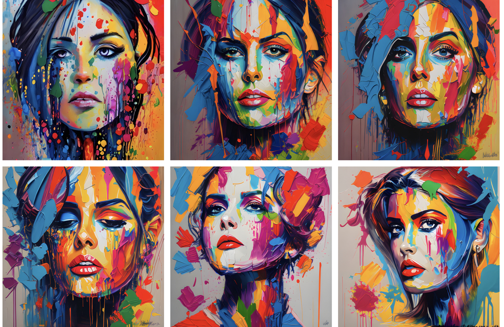 Wall Art Set of 6 Prints Colourful Oil Painting Portrait